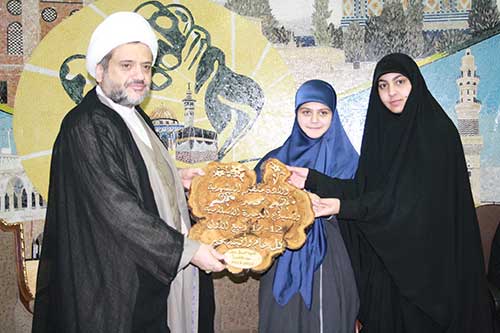 الطالبة: في يوم مولدك شعت أنوار الكون فكنت كشمعة أضاءت الظلمات، يوم أشرقت على الحياة تلألأت كالشمس وزعتَ الهِداية على القوم، لقد كنت أكثر الناس صبراً وعطاءاً للأمل وللهدى، ولكنهم لم يقدِّروا عطاءك ولم يوفوك حقك فأسرفوا في اختلاق الأكاذيب وعبثوا بقدسك وجلالتك، هنا نقول لهم لن نسكت بعد الآن لأن سكوتنا سيكون كعلامة القبول والخضوع ولكننا لسنا كذلك فباسم وحدة الإسلام لن نقبل بأن يهان نبينا لأن البدء بالإهانة ينتهي بالأعظم ولهذا فلنكن يداً بيد لنظهر للعالم بأن النبي محمد (ص) لم يأتي إلا ليوحدنا، أما بعد نحن لن ندع الفتن تفرقنا بل سنبقى يداً واحدة بإذن الله تعالى ونحن تلميذات الصف الثامن من مدراس المهدي – شاهد نقدم لكم هذا الدرع لنرسخ ذكرى أسبوع الوحدة الإسلامية محبةً و تقديراً وإخوة.