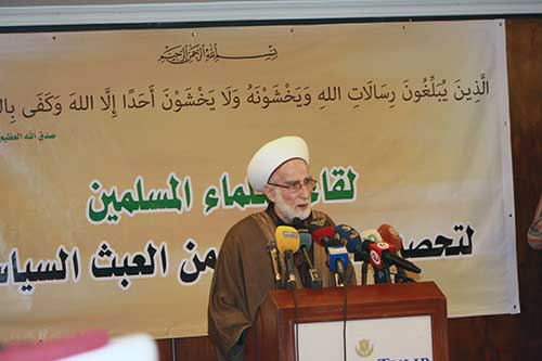 ثم كانت كلمة رئيس أمناء تجمع العلماء المسلمين الشيخ احمد الزين لفت فيها إلى أن