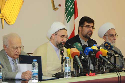 هذا هدف في غاية النبل بالنسبة للإسلام والمسلمين، يسعدنا أن نرحب بهذا اللقاء أهلاً بكم جميعاً وبسعادة السفير العزيز الأستاذ غضنفر ركن آبادي سفير الجمهورية الإسلامية الإيرانية أهلاً وسهلاً بكم في دارنا شرفت سعادة السفير وكذلك نرحب بصورة خاصة بسماحة آية الله الشيخ محسن الآراكي الأمين العام للمجمع العالمي للتقريب بين المذاهب الإسلامية أهلاً وسهلاً بسماحة آية الله الشيخ محسن الآراكي في دارنا وبكل المخلصين والصادقين والمؤمنين والعاملين في هذا المجال مجال التقريب بين المذاهب الإسلامية. هذا حدث جليل اليوم ليس لأنه أقيم في نقابة الصحافة لا إنما الغاية غاية التقريب بين المذاهب هي من أنبل الغايات ومن يسعى لتحقيقها. فشكراً وألف شكر للمجمع العالمي للتقريب بين المذاهب الإسلامية لأنه رغم كل شيء لم يتخلى لحظة واحدة عن السعي لتحقيق الغاية الجادة وهذه الخطوة اليوم هي من أهم الخطوات التي سيقدم عليها وسيستمر بإذن الله، للمجمع العالمي للتقريب بين المذاهب وهو بإذن الله ثابت. أهلاً وسهلاً بمجمع العالمي للتقريب بين المذاهب وبأمينه العام ونشكركم جميعاً فرداً فردا أنتم أصحاب الدار أهلاً وسهلاً بكم في بيتكم شرفتم وإن شاء الله تكون الغاية المرجوة من عقد هذا المؤتمر تفضلوا. الكلمة الآن للشيخ محسن الآراكي يفتتح بها هذا المؤتمر. كلمة أمين عام مجمع التقريب بين المذاهب سماحة آية الله الشيخ محسن الآراكي: الحمد لله رب العالمين والصلاة والسلام على أشرف خلقه نبينا وسيدنا أبا القاسم محمد وعلى أهل بيته الطيبين الطاهرين وصحبه الميامين. قال الله سبحانه في كتابه: ﴿وَلا تَكُونُوا مِنَ الْمُشْرِكِينَ * مِنَ الَّذِينَ فَرَّقُوا دِينَهُمْ وَكَانُوا شِيَعًا كُلُّ حِزْبٍ بِمَا لَدَيْهِمْ فَرِحُونَ﴾.