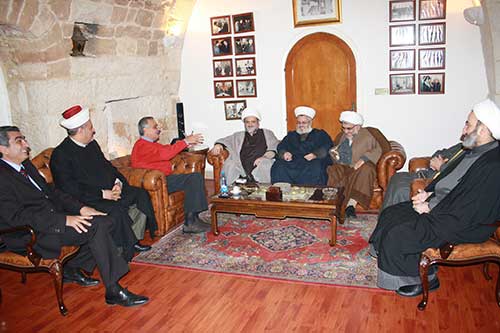 تشرفنا بزيارة معالي الوزير طلال أرسلان وكان اللقاء مناسبة لطرح أمور عديدة، الأولى أننا وجهنا إليه التعزية بوفاة المرجع الروحي الشيخ أبو غنام. وفي المسألة السياسية أكدنا على أن البلاد تحتاج إلى رئيس جديد ولا يجوز مطلقاً أن نعمل على التمديد لأن التمديد يجر الخراب على البلد والفراغ أفضل من التمديد بألف مرة لأننا أصلاً حالياً نعاني حالة فراغ سياسي كبير كون البلد بلا حكومة. في الموضوع الثاني الذي هو تشكيل الحكومة، نحن دعينا إلى الإسراع بتشكيل حكومة وحدة وطنية من 9-9-6 وهذا أفضل الحلول المطروحة. إن السعي من أجل تشكيل حكومة أمر واقع هو إدخال للبلاد في حرب أهلية. نحن نتمنى على الرئيس المكلف وهو ابن بيت كريم، ولا يمكن أن يكون سبباً في استعادة أجواء الحرب الأهلية، اليوم نحن بحاجة ماسة إلى تكاتف اللبنانيين لكي ندرأ عن أنفسنا المخاطر التي يتعرض لها لبنان. أيضاً طرحنا الإشكال الذي حصل بالصويري أمس ودعينا أهلنا بهذه البلدة إلى أن يتكاتفوا وأن يتركوا الأمر للدولة اللبنانية من أجل أن تقتص من الذين سببوا هذه الحادثة، ويجب أن لا ينجروا إلى إدخالها في خانة الصراع المذهبي أو السياسي أو الطائفي، وإنما هي مجرد مشكلة فردية ووضعها في إطار المشكلة الفردية، حرام من الناحية الشرعية، نحن علماء تجمع العلماء المسلمين من السنة والشيعة نحرم على كل المسلمين الموجودين في الصويري أن ينجروا إلى فتنة طائفية وندعوهم إلى أن يجلسوا مع بعضهم البعض وهم عائلة واحدة بينهم تزاوج و مصاهرة. أيضاً أكدنا على أن الموضوع في سوريا أن الحل لن يكون إلا حلاً سياسياً من خلال الجلوس إلى طاولة حوارٍ تضم المعارضة السلمية التي لم تتلوث يدها بالدماء ولم تسعَ من أجل أن تستجلب الأجنبي ليضرب سوريا، أما التكفيريين فلا حل معهم إلا إما بإخراجهم من سوريا أو بالقضاء عليهم لأنهم يشكلون خطراً لا على سوريا بل على كل المشرق العربي. أيضاً نحن كتجمع العلماء المسلمين ندعو المملكة العربية السعودية إلى أن تعود إلى وعيها وأن تمارس عملية الإصلاح في هذا البلد بل في كل المنطقة وأن تتلاقى في منتصف الطريق مع الجمهورية الإسلامية الإيرانية التي ما زالت تمد يدها إليها من أجل أن تضع حلولاً ناجحة لاستقرار وأمن بلاد المسلمين والحمد لله رب العالمين.