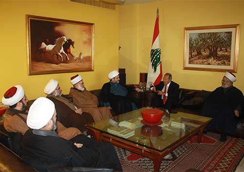 تشرفنا بلقاء فخامة الرئيس العماد إميل لحود، وكان اللقاء كالعادة فرصة لبحث أمور عديدة تخص لبنان والمنطقة، المسألة الأولى التي تحدثنا فيها هي رفض أي فكرة لتمديد مدة رئاسة رئيس الجمهورية، ودعوة إلى انتخاب رئيس جمهورية قوي، رئيس جمهورية يستطيع أن يحكم بكل معنى الكلمة، يستطيع أن يتخذ المواقف الوطنية. نريده رئيساً داعماً للمقاومة، نريده رئيساً يسعى من أجل قمع الفساد في هذا البلد، نريده رئيساً يؤسس من أجل الحوار الوطني والوصول إلى ما يؤَّمن للبنانيين السعادة والراحة الاجتماعية والاقتصادية، وأما الرئيس الضعيف تحت عنوان الوسطي فهو رئيس مرفوض، أما التمديد فالتمديد أيضاً مرفوض، نريد رئيساً بكل معنى الكلمة بقامة عالية وداعم للمقاومة، رئيس مقاوم بكل معنى الكلمة كالعماد الرئيس إميل لحود. المسألة الثانية موضوع الحكومة، نحن نرفض بشكلٍ مطلق أن تكون هناك حكومة أمر واقع ونقول ونحذر كتجمع العلماء المسلمين وكعلماء للمسلمين بأنَّ تشكيل حكومة أمر واقع سيؤدي بالبلد إلى حرب أهلية، حرامٌ عليكم أن تذهبوا بالبلد إلى حرب أهلية، نريد حكومة يجتمع فيها الجميع المعارضة والموالاة، 14 آذار و8 آذار، هذه الحكومة تتفق على مبادئ العيش المشترك وتسعى من اجل رد العدوان الصهيوني المتكرر يومياً على مياهنا وأرضنا، وأن تسعى من اجل استخراج ثرواتنا النفطية في بلدٍ يئن من الفقر والحاجة. بالموضوع السوري نعم لقد انتصر محور المقاومة والآن نحن في بداية النهايات للأزمة السورية، على الجميع أن يُعيد حساباته، التعصب والحقد لن يؤدي إلى شيء، يجب على العرب أن يجتمعوا تحت راية واحدة هي استعادة المقدسات وخاصة فلسطين المحتلة. على كل حال الجلسة مع الرئيس لحود كانت جلسة أفق عامة، وإنشاء الله الأمور تسير نحو الخير لا نحو الخراب.