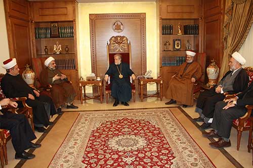 الشيخ زهير الجعيد: تشرفنا اليوم بزيارة البطريرك آرام الأول لنؤكد على تهنئتنا للإخوة الأرمن بعيد الميلاد المجيد، نحن نحمل هّم التعايش الإسلامي- المسيحي في تجمع العلماء المسلمين، لذلك تباحثنا مع سيادته عن المخاطر التي تهدد اللبنانيين جميعاً المسلمين والمسيحيين، فنحن جميعاً في مركب واحد، وما يهدد أحدنا يهدد الآخر، لذلك كان التوافق التام على أن لا مخرج مما نعيش فيه إلا من خلال الوحدة ومن خلال الكلمة الطيبة والمحبة لنقف بوجه كل الأعداء الذين يقتلون هنا وهناك، وإن المشكلة اليوم في المنطقة مشكلة عامة إن كان في سوريا أو كان في العراق أو في مصر أو في غيرها، لذلك توافقنا على رفض الإرهاب وإدانته، أن الإسلام الذي أتى من خلال ﴿وَمَا أَرْسَلْنَاكَ إِلا رَحْمَةً لِّلْعَالَمِينَ﴾ ﴿وَإِنَّكَ لَعَلى خُلُقٍ عَظِيمٍ﴾ هذا هو الإسلام الحقيقي الذي جئنا به سنة وشيعة اليوم إلى هنا لنعبر عن سماحة الإسلام وعن محبة الإسلام وتعايش الإسلام مع الإخوة الآخرين مسيحيين أم غيرهم. كذلك طرحنا مع سيادته إمكانية عقد لقاء روحي كبير إسلامي- مسيحي لنؤكد على هذه المشهدية الوحدوية في وجه مشهدية التفرق والتمزق والتقوقع والتقاتل هنا أوهناك. اليوم نحن أحوج ما نكون إلى هذه الوحدة وإلى هذا التواصل فيما بيننا، ووجهنا دعوة من تجمع العلماء المسلمين لسيادته لزيارة التجمع واللقاء مع الإخوة المشايخ هناك، والحمد لله رب العالمين. كلمة باسم سيادة البطريرك كيشيشيان: يشرفنا استقبال المشايخ في الصرح ألبطريركي لكاثوليكية الأرمن الأرثوذكس في انطلياس، تجمع العلماء المسلمين هم تجمع قريب جداً من هذا الصرح وقداسته عبَّر في هذا اللقاء عن تضامنه بين المسيحيين والمسلمين في هذا الظرف الصعب في المنطقة، وقال أن المسيحيون والمسلمون عاشوا منذ قرون بعيدة سوياً وليست هناك أي مشاكل بين بعضهم البعض وشدد على الحوار الدائم والتعايش المشترك بين أبناء الشعب الواحد في هذا البلد.