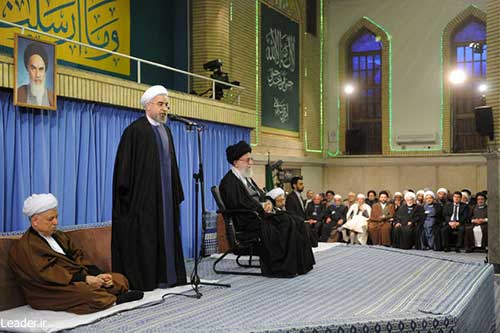الخامنئي دام ظله ورئيس الجمهورية الإسلامية الإيرانية سماحة الشيخ الدكتور حسن