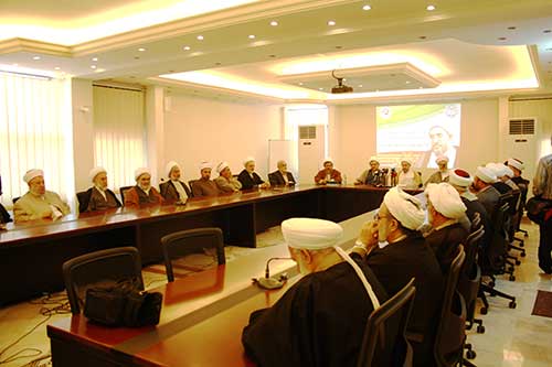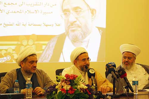 باعتبارهما القو لذلك عملنا ونعمل نحن في تجمع العلماء المسلمين وعمل الإخوة في مجمع التقريب بين المذاهب بشكلٍ دؤوب لمنع حصول هذا الشيء، لمنع حصول هذه الفرقة وحتى أنهم اخترعوا في مكان لا توجد فيه سنة وشيعة اعتبارات أخرى للفرقة وقالوا في مؤتمراتهم وماذا سنفعل في فلسطين حيث لا سنة وشيعة، قالوا نقول إن حماس هي رأس المشروع الصفوي الإيراني الفلسطيني، وابتدأوا يقولون في بعض المسيرات هناك شيعية شيعية، العمل على التفريق. نحن نعمل وبمساعدة ومعاونة الإخوة في قيادة الجمهورية الإسلامية الإيرانية على إعادة اللحمة وتجاوز أخطاء إخوتنا، نحن نريد أن كل من أخطأ في المرحلة الماضية خصوصاً إبان الأزمة السورية وأراد أن يرجع إلى حظيرة المقاومة فأهلاً به مقاوماً ولا أهلاً به مفخخاً ومفجراً، فليعودوا إلى حظيرة المقاومة وهم إنشاء الله سيكونون معنا يداً واحدة إن حصلت مصالحة حقيقية، وحتى بغض النظر عن كل ما يحصل اليوم من انطلاق سياسي والتطورات التي حصلت في مصر، نحن لا نعمل على أساس إساءة الظن ولكن لا نريد أن ننجرف في عواطفنا، إن أحسنوا فنحن معهم وإن أساءوا فلن نسد عليهم. وإحسانهم يكون بتبنيهم للمقاومة وبتبنيهم لتحرير فلسطين وبإلغائهم لا بمراجعتهم لكامب ديفيد. أما مع إيران فنحن معها بلا حدود ولا شروط لأنها الإسلام، الدولة التي صمدت وصبرت وانتصرت بفضل تمسكها بهذا الدين الحنيف. أترك الكلام لسيد الكلام لسماحة الشيخ محسن الآراكي فليتفضل. كلمة آية الله الشيخ محسن الآراكي: الحمد لله رب العالمين والصلاة والسلام على سيدنا محمد وآله الطيبين الطاهرين وصحبه أجمعين. أعوذ بالله من الشيطان الرجيم ﴿آمَنَ الرَّسُولُ بِمَا أُنزِلَ إِلَيْهِ مِن رَّبِّهِ وَالْمُؤْمِنُونَ كُلٌّ آمَنَ بِاللهِ وَمَلآئِكَتِهِ وَكُتُبِهِ وَرُسُلِهِ لاَ نُفَرِّقُ بَيْنَ أَحَدٍ مِّن رُّسُلِهِ وَقَالُواْ سَمِعْنَا وَأَطَعْنَا﴾. بداية أقدم شكري للإخوة في تجمع العلماء المسلمين وعلى هذا اللقاء المبارك إنشاء الله. وأبدأ بالآية التي تحدد لنا إستراتجيتنا سواء فيما بيننا أو في مواجهتنا للآخر.