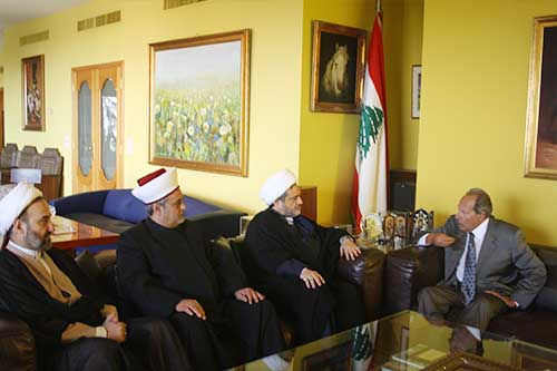 أصروا على ذلك فليكن التمديد لمجلس نواب يمارس دوره ول رابعاً: إن الكيان الصهيوني هو المستفيد الأكبر مما يحصل في منطقتنا وهو يعمل على إيقاع الفتن بين أبنائها ويسعى لخلق كيانات طائفية ومذهبية تبرر يهودية كيانه بالتعاون والتنسيق التام مع داعش. لذا يجب وضع مواجهة هذا الكيان واستمرار الحرب معه في أولى أولوياتنا، فباقتلاع هذه الغدة السرطانية تحل كل مشاكل منطقتنا. أخيراً وضع الوفد فخامة الرئيس إميل لحود في أجواء المؤتمر الذي عقد في طهران والذي أنتج اتحاداً عالمياً لعلماء المقاومة، وقد بارك فخامته هذه الخطوة باعتبارها خطوة في الطريق الصحيح بتحديد وجهة الصراع في المنطقة بأنها صراع سياسي وليس مذهبياً أو طائفياً.