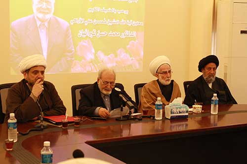 بداية أتوجه بجزيل الشكر والامتنان إلى فضيلة العلامة الشيخ حسان عبد الله الرئيس التنفيذي لتجمع العلماء المسلمين ورئيس مكتب مجمع التقريب بين المذاهب الإسلامية في لبنان الحبيبة طبعاً الشكر موصول لسماحة العلامة الشيخ أحمد الزين وللعلماء الأفاضل، كما وأرفع إلى مسامعكم الكريمة تحيات سماحة آية الله الشيخ محسن الآراكي الأمين العام للمجمع العالمي للتقريب بين المذاهب الذي كلفني بأن أنقل خالص تحياته لكم سادتي العلماء، وأبدي سعادتي الغامرة بلقاء السادة العلماء الأفاضل في هذا البلد الكريم لبنان، ونرجو أن تدعو لنا بالتوفيق كما أشار فضيلة العلامة الشيخ حسان عبد الله لعقد مؤتمر الوحدة الإسلامية بعنوان: "الأمة الإسلامية الواحدة: التحديات والآليات". سادتي العلماء الأفاضل إن العالم الإسلامي اليوم يشهد حدثين جل خطيرين يهددان مصير الإسلام والمسلمين، فالخطر الأول حرب الإبادة التي يشنها العدو الصهيوني بين حين وآخر على أهلنا في فلسطين وفي غزة وفي العالم الإسلامي وقتله للأبرياء وانتهاكه لحرمة أولى القبلتين ومؤامرة تهويد القدس وشرعنة الاستيطان وتوسيع خارطة الاحتلال. والخطر الثاني كما تعلمون المخطط الصهيو/أمريكي لضرب المقاومة الإسلامية وتطويق أوصال الشعوب الحاضنة لها وتقسيم البلدان التي أبت الخضوع لمؤامرة السلام الأمريكي مع النظام الصهيوني الهادفة إلى السيطرة التامة على قلب العالم الإسلامي وتحويل بلاد الصمود والمقاومة إلى دويلات صغيرة ضعيفة عاجزة عن دعم المقاومة ومنشغلة بالفتن والحروب الطائفية والحروب الداخلية مستخدمة لأجل ذلك الفرق التكفيرية وعصابات الإرهاب الممولة والمدعومة من قبل الصهاينة وحلفائها في المنطقة وكذلك الولايات المتحدة وشركاء أمريكا . إن هذين الحدثين الخطيرين يشكلان فكي الكماشة لفتنة كبرى حلت ببلاد الإسلام وأهله وأشار إليها ربنا في كتابه وحذر المسلمين منها وأكد عليها وعلى التحذير منها. وكما حذر قائدنا الأعظم ونبينا الأكرم (ص) في أكثر من حديث متفق على صحته بين المسلمين. إن مواجهة هذه الفتن الكبرى هي أهم ما يجب علينا جميعاً اليوم وهذا كما تعلمون وأنتم العلماء الأفاضل وجوباً قطعياً وكذلك شرعياً وعقلياً وذلك يستوجب القيام بما يلي: أولاً علينا توحيد الصفوف في مواجهة العدو الصهيوني والأنظمة الاستكبارية الحليفة لها ونبذ الخلافات السياسية والفكرية التي تحول دون الاهتمام بقضية المسلمين الكبرى وهي قضية فلسطين وقضية المقاومة الإسلامية وعلينا أن نوجه جميع الطاقات ونوحد صفوفنا في سبيل نصرة الشعب الفلسطيني وتحرير فلسطين والدفاع عن حرمة المسجد الأقصى قبلة المسلمين الأولى . وثانياً علينا دعم المقاومة الإسلامية وتعبئة كل الطاقات والجهود من اجل تشكيل جبهة صمود واحدة وعريضة وشاملة من أقصى المشرق الإسلامي إلى أقصى المغرب تحمل راية الدفاع عن القيم الإسلامية وتتبنى مواجهة ومقارعة التيارات التكفيرية والعصابات الإرهابية التي تهدف إلى تمزيق الصف الإسلامي وإشعال نار الفتن والحروب في بلاد المسلمين. أما بشأن حقيقة الفتن التي تشهدها بلاد الإسلام وخاصة ما نشهده الآن في العراق، في أفغانستان، في باكستان والمناطق الأخرى، وإن الحرب فيها ليست حرب بين الشيعة والسنة ولا بين العرب والكرد ولا بين المسلمين ولا المسيحيين وإنما هي حرب القوى الإستكبارية ضد جبهة المقاومة الصامدة في وجه العدو الصهيوني وبعبارة أخرى إنها مؤامرة صهيونية أمريكية يُراد منها إشغال شعوب المنطق بحروب داخلية حتى يخلو الجو للصهاينة فينفذوا خططهم ويحققوا آمالهم التي طالما كانوا يحلمون بها في السيطرة على المنطقة وإذلال الشعوب وتمزيق أوصالها.أشكركم سماحة الشيخ حسان عبد الله على حُسن الضيافة وكرم الاستقبال وأتمنى للعلماء جميعاً كل خير ونرجو منكم أن تدعو لنا بالتوفيق لإقامة المؤتمر الثامن والعشرين للوحدة الإسلامية في طهران وأتقدم بوافر الشكر للعلامة الشيخ احمد الزين الذي تشرفت بلقائه ولقاء السا