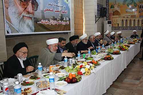 حضره المستشار الأول في السفارة محمد حسن جاويد، ورئيس مجلس الأمناء في تجمع العلماء المسلمين القاضي الشيخ احمد الزين ورئيس الهيئة الإدارية في التجمع الدكتور الشيخ حسان عبد الله وأعضاء المجلس المركزي وحشد من علماء الدين. بداية الحفل ألقى القاضي الشيخ أحمد الزين كلمة ترحيبية قائلاً: إننا علماء الدين في التجمع من سنة وشيعة نطل على العالم الإسلامي والعربي لنطرح فكرة كتاب الله لأن "هذه أمتكم أمة واحدة وأنا ربكم فاعبدون" . نلتقي على الإلتزام بكتاب الله، داعين للوحدة الإسلامية متجاوزين التفرقة. ثم كانت كلمة لرئيس الهيئة الإدارية الدكتور الشيخ حسان عبد الله قائلاً: نلتقي اليوم لنكرم صديقاً عزيزاً وأخاً كبيراً عرفناه رسالياً حاملاً مسؤولية تمثيل الجمهورية الإسلامية الإيرانية خير تمثيل عنيت به سعادة سفير الجمهورية الإسلامية الإيرانية الحاج محمد فتح علي. ونحن في تجمع العلماء المسلمين إذ نكرم سعادته، نكرم من خلاله الشعب الإيراني البطل ونتنسم منه أريج وعبق الولاية المتمثلة بسماحة الإمام القائد السيد علي الخامنائي مد ظله الوارف والقيادة الإيرانية المتمثلة بكل مواقع السلطة من رئيس الجمهورية الإسلامية الإيرانية الشيخ الدكتور حسن روحاني ورئيس مجلس الشورى الدكتور علي لاريجاني ووزير الخارجية السيد محمد جواد ظريف. إننا اليوم نعيش فرحة عارمة بانتصار الدبلوماسية الإيرانية في الوصول إلى إثبات حقها في التكنولوجيا النووية السلمية بعد اثني عشر سنة من المفاوضات الشاقة والصعبة والتي أثبتت من خلالها الجمهورية الإسلامية الإيرانية أنها مستعدة لتحمل كل الصعاب والمشاق في سبيل إحقاق الحق وأنه لا ينفع معها لا حصار اقتصادي ولا عقوبات ولا التهديد بالفتن والحروب. سعادة السفير.... السادة العلماء... إنها معادلة بسيطة لو أن الجمهورية الإسلامية الإيرانية تخلت عن قضية العرب الأولى القضية الفلسطينية لما كانت عانت لأثني عشر سنة من العقوبات والمؤامرات ولكانت هي القائدة وصاحبة الكلمة الأولى على كل دول المنطقة ولكنها جمهورية المبدأ والرسالة ولا يهمها الثمن الذي سيُدفع، وحسبها ما قاله الإمام الحسين عليه السلام " هون ما نزل بي أنه في عين الله". إننا في تجمع العلماء المسلمين نبهنا منذ مدة طويلة إلى أن غضب وحنق بعض الدول الخليجية وعلى رأسها حكام الحجاز أدى بهم إلى الدخول في مغامرات غير محسوبة النتائج وهم يُعدون العدة اليوم لاشعال المنطقة في فتنة مذهبية بين السنة والشيعة مصورين أن الصراع هذه طبيعته، وهذا كذب واضح وتعمية، فالقضية في جوهرها أن خط المقاومة الذي تقوده الجمهورية الإسلامية الإيرانية انتصر في أماكن متعددة فلم تنفع الحرب على العراق من أخذها رهينة، وخرجت أمريكا منها مدحورة ولم تستطع السعودية أن تحصل على مكاسب رغم الأموال التي دفعتها، وهذه سوريا أربع سنوات من القتال والضغوط وما زالت صامدة وقوية، وهذه اليمن يمن الخير انتصر فيها الفقراء على فراعنة هذا الزمان. سعادة السفير.... السادة العلماء... إن القضية باختصار هي ما أعلنه نتنياهو عندما قال " يجب أن يتضمن الاتفاق حق إسرائيل بالوجود" فقد اختصر كل الأزمة بعدة كلمات، القتال والحرب في المنطقة هي حرب الصهاينة وأعوانهم لتثبيت وجود الكيان الصهيوني الغاصب، والطائرات الحربية المتطورة ليست لتحرير فلسطين بل لضرب كل من يرفع شعار (الموت لإسرائيل) لذلك نراها قوية على الشعب اليمني الفقير، والحرب ليست بين سنة وشيعة أو عرب وفرس، والدليل ألم يكن جمال عبد الناصر القومي العربي السني إلى جانب الثورة في اليمن بقيادة عبد الله السلال وكانت السعودية تخوض الحرب إلى جانب الحكم الزيدي (الشيعي) وكان شاه إيران الفارسي الشيعي إلى جانبها؟!! إن انقلاب المعادلة اليوم يؤكد أن الهدف واحد وهو عندما تشعر دول الخليج أن هناك خطراً على الكيان الصهيوني والذي بوجوده يكون تربعهم على عروشهم ينتفضون ليقاتلوا المد المقاوم، فالقضية مقاومة والوجهة فلسطين، وكل ما عدا ذلك كذب ودجل 