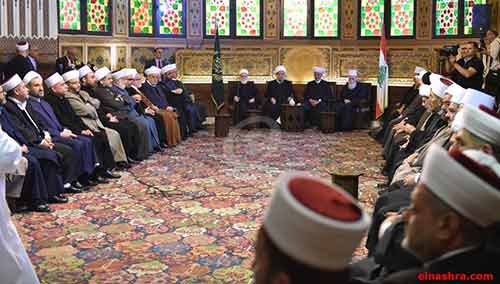 وأبدت القمة في بيان أيده وتبناه جميع العلماء "قلقها الشديد جراء استمرار الاضطرابات التي تعصف بالعديد من الدول العربية والتي تأخذ طابعا طائفيا ومذهبيا وعنصريا، الأمر الذي يشكل خطرا على وحدة مجتمعات هذه الدول بما فيها لبنان، وتالياً على أمنها واستقرارها. وهي تحذر من أن هذه الاضطرابات لا تخدم سوى العدو الإسرائيلي، وأنها لا تصب إلا في مشروعه الذي يستهدف شق الصف الإسلامي وتمزيق النسيج الوطني الذي يجمع بين مكونات المجتمعات العربية المتعددة". وأبدت قلقها "من تبادل الاتهامات بين بعض المسؤولين السياسيين على خلفية مذهبية، الأمر الذي يعطي خلافاتهم بعدا مذهبيا من شأنه أن يعمق الهوة التي يعمل العدو الإسرائيلي على حفرها وتوسيعها واستغلالها. وفي الوقت الذي تمضي فيه إسرائيل باحتلال الأراضي العربية المحتلة، وبناء المزيد من المستوطنات عليها، وفي الوقت الذي تواصل تهويد مدينة القدس والاعتداء على حرمات المسجد الأقصى وكنيسة القيامة، وعلى العديد من المقدسات الإسلامية والمسيحية الأخرى، تأتي الصراعات والاضطرابات داخل الدول العربية، وبينها، لتوحي خطأ، بأن المسلمين عموما والعرب خصوصا، تخلوا عن أولوية القضية الفلسطينية، وأن الأولوية التي تستقطب اهتماماتهم وتسيل من أجلها دماؤهم هي للمشاريع المذهبية والطائفية". أضاف البيان: "من أجل ذلك تؤكد القمة الروحية الإسلامية الثوابت الإسلامية التي ألقاها الأمين العام للقمة محمد السماك الآتي نصها: أولاً: دعوة المسلمين، جميع المسلمين، إلى التمسك بحبل الله المتين، والى عدم التفرق، وهذا لا يعني عدم الاختلاف، بل انه يعني تقبل الاختلاف واحترامه على أساس القاعدة الإيمانية الجوهرية "إنما المؤمنون أخوة". إن تعدد المذاهب والاجتهادات لا يلغي ولا يضعف هذه الأخوة التي تقوم على الإيمان بالله الواحد العلي القدير وعلى الإيمان برسول الله محمد(ص)، وبكتاب الله القرآن الكريم. ثانياً: التأكيد على حرمة قتال المسلم للمسلم والالتزام بتعاليم رسول الله عليه السلام التي تؤكد على "إن كل المسلم على المسلم حرام ، دمه وماله وعرضه". ثالثاً: إدانة كل أشكال التطرف والغلو وتكفير المؤمنين بالله الواحد والتي تخرج في الشكل والأساس عن سماحة الإسلام وتتناقض مع قيمه ومبادئه السامية، وتسيء إلى رسالته وتشوه صورته. رابعاً: الدعوة إلى اعتماد الصراط المستقيم في العلاقات الإسلامية - الإسلامية، وفي العلاقات الإسلامية - المسيحية ، صراط الذين أنعم الله عليهم . وهي صراط العدل والاعتدال واحترام التعدد والاختلاف بين الناس. والابتعاد عن صراط المغضوب عليهم وعن صراط الضالين منهم عن سماحة الإسلام وسمو تعاليمه. خامساً: إدانة السلوك الإرهابي الذي يلازم التطرف والغلو والتنطع الذي نهانا عنه وحذرنا منه قدوتنا وأسوتنا الحسنة رسول الله. وهو السلوك الذي يتناقض مع الشريعة الإسلامية ومبادئها وتأكيد كرامة الإنسان وحرمة النفس البشرية على قاعدة "من قتل نفساً بغير نفس أو فساد في الأرض فكأنما قتل الناس جميعاً، ومن أحياها فكأنما أحيا الناس جميعاً". إن الإسلام الذي يؤمن برسالات الله جميعها، وبرسل الله وأنبيائه جميعا، لا يضيق بتعدد الاجتهادات الفقهية داخل الدين الواحد ، وتحت سقف الإيمان بالله الواحد وبرسوله الكريم عليه السلام. وهو يتكامل مع رسالات التوحيد التي أوحى بها الله سبحانه وتعالى على النحو الذي يمثله قول رسول الله (ص): "إنما بعثت لأتمم مكارم الأخلاق". سادساً: تدعو القمة الإسلامية المسلمين من كافة المذاهب في لبنان وفي الدول العربية والإسلامية الأخرى إلى وعي الثوابت الإيمانية التي تقوم عليها العقيدة الإسلامية والالتزام بها لتجنب الوقوع في فخ التأويلات الضالة والمضللة التي تقول الإسلام ما لم يقله، ولتجنب الانجرار إلى فخ الفتنة التي ينفخ في نارها العدو الإسرائيلي والقوى الداعمة له. فالدين واحد وإن تعددت شرائعه والإسلام واحد وإن تعددت مذاهبه والله وحده يحكم بين الناس يوم القيامة فيما كان