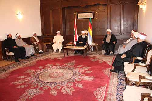 تشرفنا بلقاء شيخ عقل طائفة الموحدين الدروز الشيخ نعيم حسن ضمن الجولة التي يقوم بها تجمع العلماء المسلمين على القيادات الروحية الإسلامية على أعتاب هذا الشهر الفضيل الذي تمنينا على الله عز وجل أن يعيده على الأمة الإسلامية بالخير واليمن والبركة. وقد تداولنا مع سماحته في أمور تهم المسلمين في لبنان والمنطقة وأكدنا على النقاط التالية: أولاً: هنأنا سماحته بالشهر الفضيل ودعونا الله معاً أن يتخذ المسلمون في العالم من معاني هذا الشهر ما يحقن دمائهم ويصون بلدانهم. ثانياً: قدمنا التعازي لسماحته بالشهداء المظلومين في قرية قلب لوزة في سوريا مؤكدين أن هذا العمل الجبان لا يمت للدين الإسلامي بصلة وأن المجتمع الدولي مسؤول عن إدانة هذه المجزرة ومعاقبة الفاعلين ومحرضيهم وأن المستفيد الأول من هذا العمل الجبان هو الكيان الصهيوني. ثالثاً: شكرنا سماحته على مشاركته الفاعلة في القمة الروحية وطلبنا منه العمل على جعل لقاءاتها دورية خاصة في هذه المرحلة الحرجة التي تمر بها الأمة الإسلامية بشكل عام ولبنان بشكل خاص. رابعاً: إن الوضع السياسي والاقتصادي في لبنان وكذا الأمني يمر بظروف صعبة بحيث بات المواطن يئن تحت وطأة هذه الأوضاع، ما يفرض عودة الانتظام للحياة السياسية اللبنانية والمبادرة بسرعة لعودة الحكومة لممارسة دورها لوضع حلول لهذه الظروف والسعي بسرعة لانتخاب رئيس جمهورية وملئ الفراغات في مؤسسات الدولة.