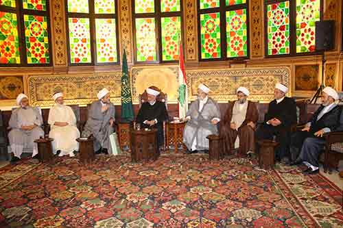 أولاً: إن ما يحصل اليوم في فلسطين من محاولات لتقسيم المسجد الأقصى بداية زمانياً ثم مكانياً مقدمة للاستيلاء الكامل عليه ليصار إلى هدمه وبناء الهيكل المزعوم مكانه سيشكل طعنة في صميم عزة المسلمين والعرب ما يفرض على المسلمين وعلى رأسهم العلماء المبادرة لشحذ الهمم والدعوة للمقاومة بكل أشكالها ليس لمنع تهويد الأقصى والقدس الشريف فحسب بل لتحرير فلسطين كل فلسطين. ثانياً: ما كان ما يحصل اليوم في فلسطين ليحصل لو كانت أمتنا موحدة وعلى قلب واحد ولا تستمع لدعاة الفتنة والدعوات الضالة للجماعات التكفيرية وأفكارهم الهدامة، لذا فإننا نعتقد أن الخطر التكفيري يتكامل مع الخطر الصهيوني ليشكلا معاً العدو الأخطر لأمتنا وهذا ما يفرض ترك الاقتتال والمبادرة إلى القضاء على الحالة التكفيرية والتي يجب أن تسير على مسارين الأول المواجهة الفكرية وفضح هذه الجماعات بأنها لا علاقة لها بالإسلام ومفاهيمه وثانياً بالمواجهة العسكرية للقضاء على من بقي على تعصّبه وضلاله ويستمر مع هذه الجماعات. ثالثاً: نحن نؤكد على ضرورة استمرار الحوار بين جميع أطراف النزاع في لبنان وخاصة بين الإخوة في تيار المستقبل وحزب الله لأن مصلحة الوطن في حل المشاكل بالتفاهم لا بالمواجهة وبالحوار لا بالاقتتال. رابعاً: أكدنا على ضرورة أن توجه دار الفتوى والمجلس الإسلامي الشيعي الأعلى خطباء الجمعة كي تكون خطبتهم المقبلة عن موضوع فلسطين وضرورة الوحدة الإسلامية في مواجهة الخطر الصهيوني الذي يريد القضاء على أمتنا بأجمعها بغض النظر عن طائفتهم أو مذهبهم. خامساً: أكدنا على المطالب المحقة للمتظاهرين ودعونا الحكومة لوضع الحلول السريعة لها بعيداً عن المحاصصة والروتين الإداري والصفقات، غير أننا لا نقر العمل الذي يقوم به البعض من محاولة تهديم أركان الدولة بل إننا نعتقد أن الحل يكون من خلال الدعوة إلى انتخابات نيابية مبكرة على أساس قانون انتخاب عصري يقر سريعاً على أساس النسبية ولبنان دائرة انتخابية واحدة لا على أساس قانون يعيد إنتاج الطبقة السياسية ولا يساهم في تداول السلطة.