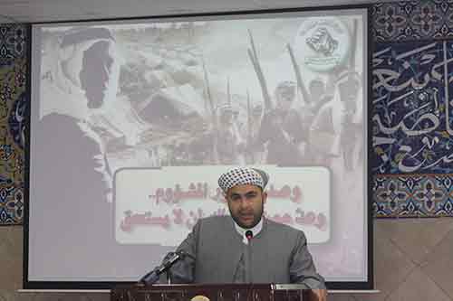 أيها الإخوة الكرام ابتدأ كلمتي بالتوجه إلى الله تبارك وتعالى بالحمد والشكر والثناء، من هنا من هذا الاجتماع الطيب الكريم للعلماء إلى المدينة المنورة إلى سيدنا ومولانا رسول الله محمد (ص) بأزكى تحية وأعطر سلام وأسمى صلاة . أيها الإخوة الكرام نلتقي على القضية الفلسطينية على القضية المركزية للأمة جمعاء. ﴿سُبْحَانَ الَّذِي أَسْرَى بِعَبْدِهِ لَيْلاً مِّنَ الْمَسْجِدِ الْحَرَامِ إِلَى الْمَسْجِدِ الأَقْصَى﴾. إن القضية الفلسطينية قضية عربية قومية إسلامية، إن فلسطين هي قلب العالم العربي وقضية فلسطين تهم كل عربي ومسلم، ففلسطين بلدهم وتأتي ذكرى وعد بلفور المشؤوم لتبين لنا أن القضية الفلسطينية قد تجاوزت الحالة الوطنية والقضية العربية لتكون بالحقيقة قضية عالمية. وعد بلفور لا يعبر عن رأي بلفور وحده وإنما الوعد هو وعد أوروبا والغرب كله، فوعده هو مشروع غربي صهيوني منطلق للعالم، صحيح بلفور هو بريطاني لكنه يعبر عن توجه بريطانيا والغرب برمته، أقول هذا نحن معشر العلماء لنضع الإصبع على الداء بذاته. المشكلة مشكلة عالمية ترفع لوائها الصهيونية، قضية بلفور تتجاوز الاحتفال بالذكرى من مؤتمرات وخطب إلى قضية عالمية، وقضية فلسطين تحتاج إلى حلول عالمية إسلامية تتناولها من جميع جوانبها، لهذا تشكل تجمع العلماء المسلمين في طهران سنة 1982، التقى العلماء في طهران على أثر الاجتياح الإسرائيلي للبنان، وطرح هذا الموضوع وطرحت هذه المشكلة كيف نواجه الاحتلال؟ ويومها تشكل تجمع العلماء المسلمين على أنه الخطوة الأولى في درب التحرير والمقاومة على أن نلتقي نحن العلماء ونوحد كلمتنا ونواجه هذه الهجمة علينا. أقول هذا لا من زاوية الحديث عن تاريخ التجمع وبداية تأسيسه إنما لأقوم معكم نحن في تجمع العلماء المسلمين بطرح مشروع الإسلام كطرح حضاري منطلقين من كلمة لا إله إلا الله وبالدعوة للوحدة الإسلامية. أين هم العرب وأين هم المسلمون وأين فلسطين اليوم؟ أقول إننا في مواجهة هذا الواقع المتردي والمتخلف للحالة الإسلامية نعم الحالة الإسلامية في تخلف، انظروا للنزاعات هذا يدل على التخلف. يعملون بما تمليه عليهم سياسة الصهيونية بالتفرقة. أما نحن في تجمع العلماء المسلمين نجتمع تحت راية لا إله إلا الله والالتزام بهدي رسول الله وأمام هذا التخلف العربي وحتى الانقسام أمام القضية الفلسطينية نعلن بأن طريقنا هو طريق المقاومة وسنتابع هذا الطريق في وجه المؤامرات الغربية والصهيونية بكل أشكالها، ونحن من هنا نوجه التحية لأمين العام السيد حسن نصر الله ولا نكتفي بذلك إنما نوجه الحب والوفاء لطهران ولمن طرح مشروع المقاومة بدءاً من الإمام الخميني وصولاً للسيد علي الخامنائي. نحن نرحب بكل دعوة للوحدة الإسلامية ونعلن مساندتنا للمقاومة الإسلامية وبإذن الله سنصلي في المسجد الأقصى ونلقى الله على ذلك إن شاء الله تعالى.