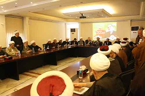 سعادة مستشار سماحة السيد القائد آية الله العظمى الإمام الخامنائي مد ظله الدكتور علي أكبر ولايتي، سعادة سفير الجمهورية الإسلامية الإيرانية في لبنان الحاج محمد فتحلي، سعادة المستشار الثقافي في المستشارية الثقافية الإيرانية في بيروت السيد محمد مهدي شريعتمدار. يسرني أن أرحب بكم في تجمع العلماء المسلمين وهنا أنا لست بحاجة أن أعرفكم بتجمع العلماء المسلمين فقد واكبتم ظروف تأسيسه إلى يومنا هذا ونحن نذكر أيام كنا نلتقي بكم كوزير لخارجية الجمهورية الإسلامية في إيران وكيف كنتم تحرصون على مد يد العون للتجمع وإسداء النصح لنا فيما يسدد مسيرتنا. بشرى قدومكم ترافقت مع إعلان إطلاق سراح العسكريين ولكن الفرحة لم تكتمل إلا بعودة باقي العسكريين المخطوفين. سعادة الدكتور ولايتي...إن تجمعنا يحمل ثلاثة أهداف رئيسية أولها نشر الإسلام المحمدي الأصيل كما دعا لذلك الإمام الخميني قدس سره وثانيها دعم المقاومة في العالم ضد الظلم والاستبداد والاحتلال وعلى وجه الخصوص مقاومة العدو الصهيوني، وثالثها الدعوة للوحدة الإسلامية بل والوحدة الوطنية والعيش المشترك مع الأديان الأخرى. وهذه الأهداف الثلاثة تعرضت خلال مسيرتنا الطويلة التي امتدت إلى ثلاثة وثلاثين عاماً ونيف إلى مواجهات دفعنا فيها من خيرة علمائنا فمنهم من قُتل ومنهم من أسر ومنهم من سجن ومع ذلك بقينا مصرين على حمل لواء أهدافنا دون التراجع قيد أنملة عن أي منها. فعلى سبيل المثال في مقاومة العدو الصهيوني استشهد لنا الشيخ راغب حرب والسيد عباس الموسوي وأسر الشيخ محرم العارفي والشيخ عبد الكريم عبيد والشيخ عباس حرب. وفي الدعوة للإسلام المحمدي الأصيل الذي نخوض اليوم معركة تبيان أهدافه وسط العمل التكفيري على تصوير الإسلام على غير حقيقته وقد استشهد لنا في هذه المعركة الشيخ عبد الرزاق الأسمر والشيخ سعد الدين غية على يد الإرهاب التكفيري. أما في موضوع الوحدة الإسلامية فعانينا كثيراً في هذا المجال منذ تأسيس التجمع حتى بات الواحد منا غريباً في بيئته، ففي وقت تشد الغرائز الناس للفتنة والخلاف المذهبي كانت دعوتنا للوحدة غريبة بل أحسسنا بالغربة بكل ما تعنيه الكلمة. سعادة الدكتور ولايتي... استطيع أن أجزم لكم أن ما حققناه في مسيرتنا الطويلة كان حتماً أكثر بكثير من الإمكانات المتاحة ولكنه أقل بكثير وكثيراً جداً من الآمال والطموحات. ففي وقت راهن الأعداء ولأكثر من مرة على انهيار التجمع وتشتته وأن تعصف الفتنة به استطاع هذا التجمع بفضل الله أن ينمو أكثر فأكثر، فمن عدد لا يتجاوز العشرة في بداية التأسيس أصبح أعداد المنتسبين إلى التجمع اليوم يفوق المائتين والخمسين عضواً، كل ذلك بفضل رعاية الإمام الخميني قدس سره وبعده سماحة السيد القائد الخامنائي مد ظله، ونحن نتطلع إلى إنجازات أكبر ونعلم أن النصر سيكون في النهاية لخط المقاومة الذي تقوده الجمهورية الإسلامية في إيران. كما وأننا على تنسيق كامل مع سماحة قائد المقاومة حجة الإسلام والمسلمين السيد حسن نصر الله حفظه المولى.