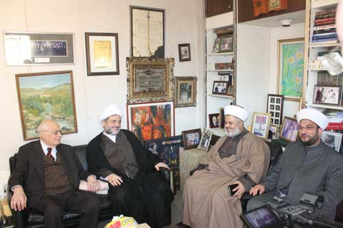 تشرفنا بلقاء دولة الرئيس الدكتور سليم الحص واللقاء مع قامة وطنية كبرى في هكذا ظروف يكتسب أهمية استثنائية وقد استفدنا من خبرته وما يمكن أن يفعله تجمعنا في هكذا ظروف وأطلعناه على ما نقوم به في مواجهة الفتن المتصاعدة في عالمنا الإسلامي وخاصة الفتنة المذهبية وقد كانت وجهات النظر متطابقة وأكدنا لدولته على الأمور التالية: أولاً: إن كل ما يحصل في عالمنا الإسلامي من فتن وحروب هدفه تقويض القضية الفلسطينية والقضاء على خط المقاومة للتوصل إلى اعتبار الكيان الصهيوني جزءاً من المنطقة، وهذا ما يؤكد عليه قادة صهاينة مع بعض العرب من خلال تصريحهم عن العلاقة الإستراتيجية التي تجمعهم. ثانياً: يبقى الأمل في إعادة توجيه البوصلة في الاتجاه الصحيح على الشعب الفلسطيني الشاهد والشهيد وعلى انتفاضته المتصاعدة وسط صمت عربي مريب، ودعونا إلى تأمين كافة الدعم لهذه الانتفاضة خاصة الدعم العسكري والمالي وبالأخص للضفة الغربية. ثالثاً: أكدنا على مواجهة الفتنة المذهبية باعتبارها خطراً مميتاً لا بد من التخلص منه وأيدنا دعوة دولة الرئيس للخروج من الأزمة بين الجمهورية الإسلامية الإيرانية والمملكة العربية السعودية لأن استمراره ليس في مصلحة الأمة، ودعونا حكومة المملكة للاستماع إلى شعبها والسماح لهم بأبسط حقوقهم في التعبير عن رأيهم والمطالبة بحقوقهم المشروعة. رابعاً: دعونا لانتخاب رئيس جمهورية في أسرع وقت كي تعود الحياة السياسية في لبنان إلى طبيعتها، ورفضنا الإجراءات المالية الأمريكية التي تهدف لحصار المقاومة ومعاقبة شعبها تحت عنوان مزيف اسمه الإرهاب.
