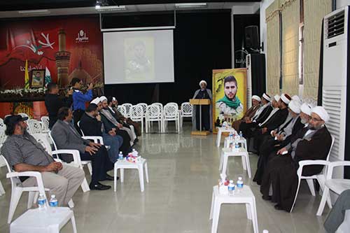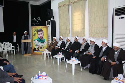 وبهذه المناسبة ألقى مسؤول العلاقات العامة في التجمع الشيخ حسين غبريس الكلمة التالية: الشهيد والذي لم يدخل في الثرى بعد، جثمانه الطاهر لم يصل إليها بعد، روحه حتماً تحلق في سماء وفضاء هذا المكان ورائحة دمه الزاكية تعبق وتملئ الوجدان والآفاق حضوراً وكلاماً وقوةً وفعلاً، لا يسعني سماحة الشيخ خضر والد الشهيد لا يسعني باسم إخواني في تجمع العلماء المسلمين إلا أن نقف معكم كعلماء الحاضر منهم والغائب، جميعنا نتعلم درساً من أبلغ الدروس ومن أقواها عظة لنا في حياتنا وزاداً لأخرتنا. كل كلمات العلماء كل كتاباتهم، كل آرائهم إنما تتوقف عندما يسيل الدم، أي دمٍ هذا؟ أي عزٍ هذا؟ أي فخرٍ هذا؟ (والآن أتكلم باسم الشيخ خضر) الذي يواسي ويعظم الأمر في قلبك وعقلك ووجدانك أن شهادة محمد حجة اليوم ليس علينا فقط، على الأمة جمعاء لتقول إن بذل الدم اليوم في سوريا وفي كل موقعٍ يواجه فيه الحق الباطل يؤكد أن المعركة ليست مذهبية على الإطلاق. عندما يستشهد أبن صيدا وأبن النبطية، عندما يستشهد أبن المخيم من قبل وأبن صور وأبن البقاع إنما يعني ذلك أن هناك دمجاً حقيقياً، وحدةً حقيقيةً تتجسد عبر الدماء الطاهرة لتقول لكل هذا العالم المجنون الذي لم يفقه بعد حقيقة الأمر، الإيمان اليوم الذي يجري بين المسلمين الملتزمين بخط الولاية والنهج المحمدي الأصيل إنما هو في قبالة الكفر كله تماماً عندما أطلق النبي (ص) في تلك المعركة الخالدة " برز الإيمان كله إلى الشرك كله" اليوم الإيمان يتمثل في هؤلاء المجاهدين الشرفاء في قبالة الكفر والدجل والنفاق والكذب.